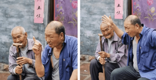 两位老人讲述故事(右一:烈士冯科之子)