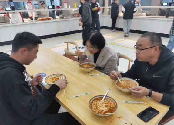领导和老师们在走访过程中与同学们展开了亲切的交流,他们关切地询问同学们的就餐情况,叮嘱同学们要提高食品安全意识,注意食品安全问题,杜绝浪费,努力争创文明餐厅,营造和谐的就餐氛围。
