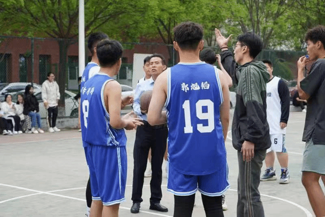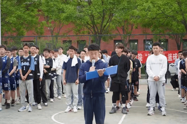 拼搏奋进展英姿,篮球场上赛团结。5月8日中午12:40开幕式后比赛正式开始,此次比赛以班级为单位,共有19支队伍参赛。比赛实行单淘汰制晋级方式,抽签分组决定比赛顺序。当比赛的哨声一响起,裁判老师把球高高抛起,双方争球的队员向上一跃,激烈的篮球赛开始了,班级的同学们自发组成拉拉队一起高呼着“加油”,为场上球员打气,场上队员之间配合默契,互相鼓励,为了大家的共同荣誉尽力奔跑,在场上挥洒奋斗的汗水。