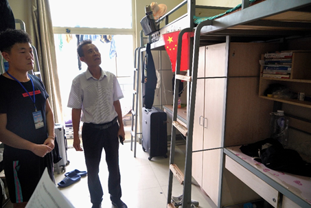 党委书记王卫民、辅导员王宝栋深入1号男生公寓,与宿舍学生交谈,了解情况。王书记说,学生宿舍是学生在校期间学习生活的重要场所,是学校对学生进行思想品德教育和行为养成教育的重要课堂,是学校精神文明建设的重要阵地。宿舍成员应当加强宿舍文明建设,共同创建“整洁、优美、有序”的宿舍环境。宿舍成员应自觉服从物业管理工作人员的管理,养成良好的作息习惯,严禁使用大功率电器,私藏管制刀具等违禁品,确保学生人身安全,为积极创建平安校园而努力。