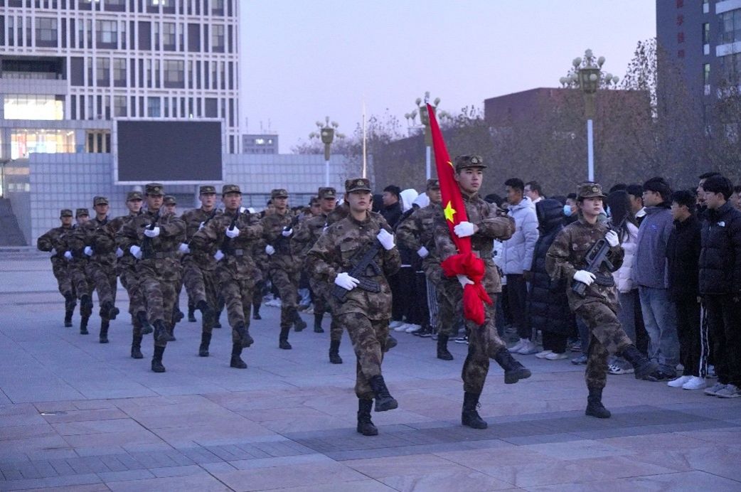 迎着朝阳,国旗护卫队迈着整齐的步伐走向国旗台;伴随着国歌,鲜艳的五星红旗冉冉升起。面对熠熠生辉的五星红旗,建工学子共同感怀时代发展的日新月异,感悟时代复兴的神圣使命,将那一缕鲜艳的红色深深镌刻在心中。
