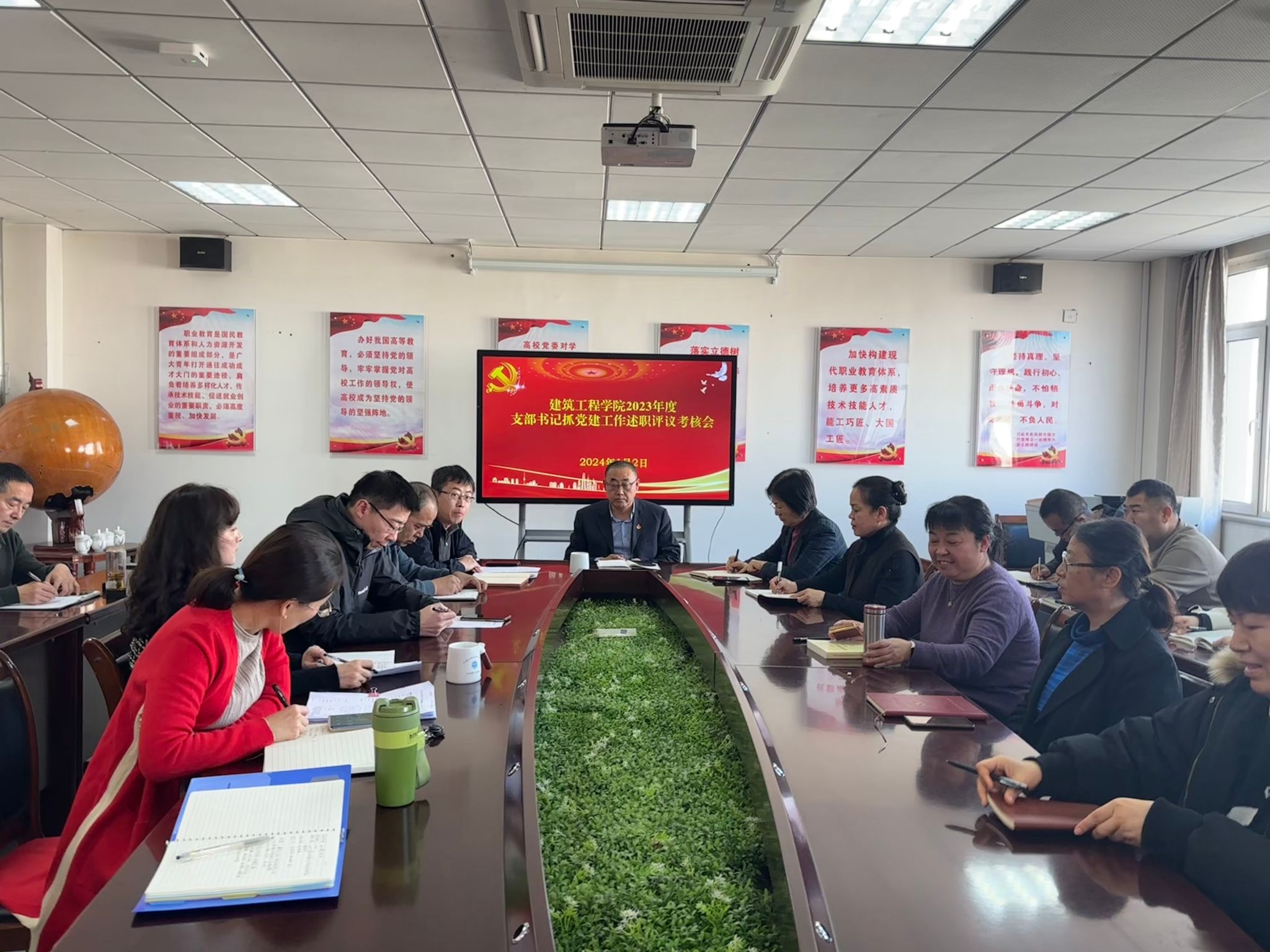 会议第一项,教工党支部和学生党支部2位支部书记依次认真总结了本年度支部工作,对照基层党支部建设标准,把自己摆进去,把职责摆进去,围绕突出学习贯彻习近平新时代中国特色社会主义思想和党的二十大精神情况,学习贯彻习近平总书记考察调研山西重要讲话重要指示精神,按照省委十二届五次全会部署,学习宣传贯彻学校第一次党代会精神,突出落实基层党建责任制,党支部履行抓党建主体责任,本支部党建工作存在的突出问题,加强和改进工作的思路措施等作现场述职汇报。重点突出在落实党建和业务深度融合工作方面的经验成效,查摆突出问题,剖析产生根源,提出破解工作瓶颈的关键举措。会议第二项,支部书记抓党建工作民主评议。严格按照程序发放测评表,填写,收回。