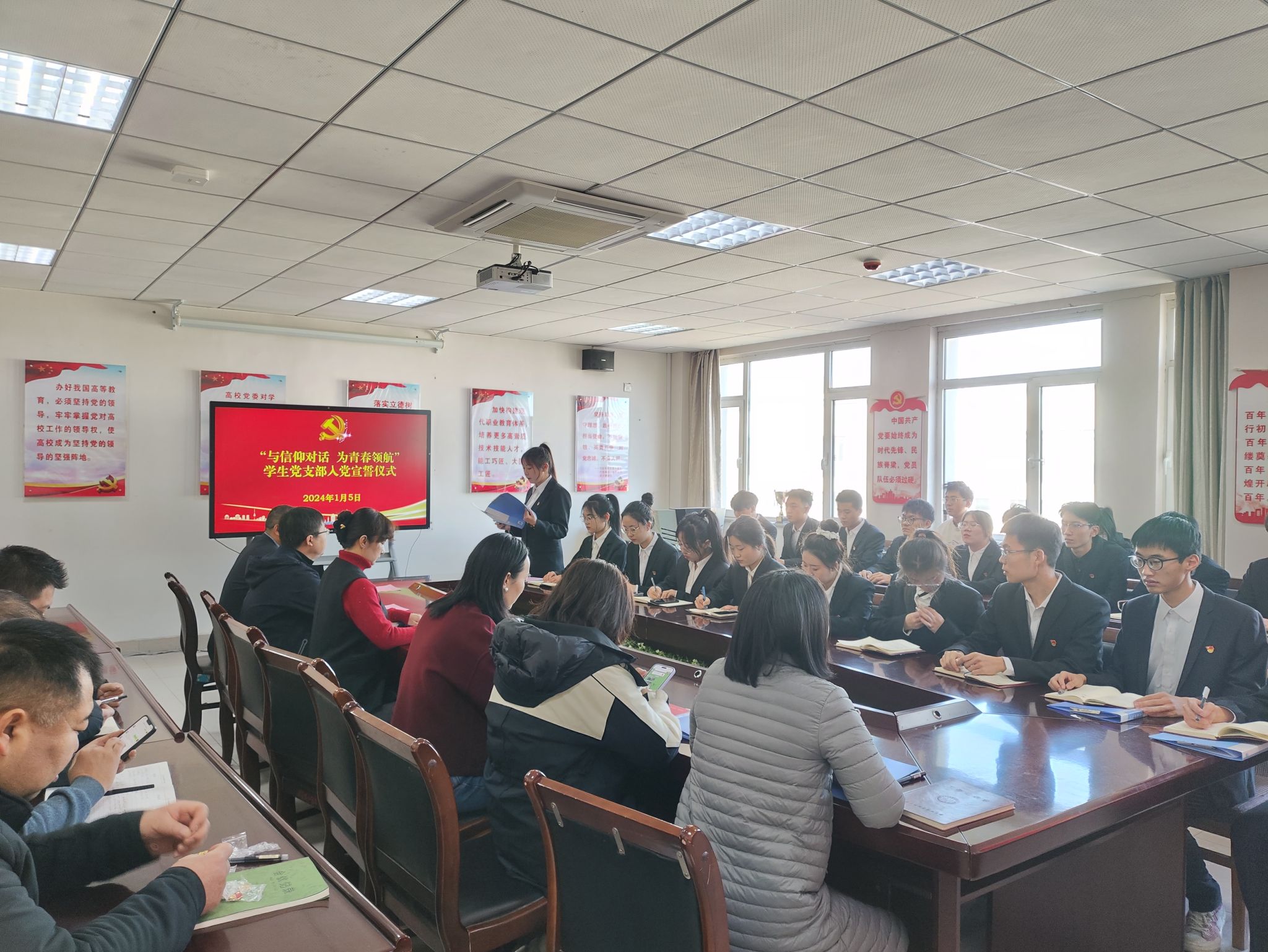 2024年1月5日上午,欧洲熟妇的性久久久久久学生党支部在五号教学楼620会议室召开入党宣誓大会。大会由学生党支部组织委员王亚主持,学院党委书记王卫民,党委副书记赵晓通,学生支部全体党员参加会议。