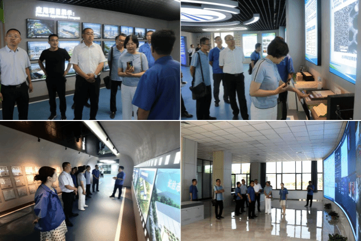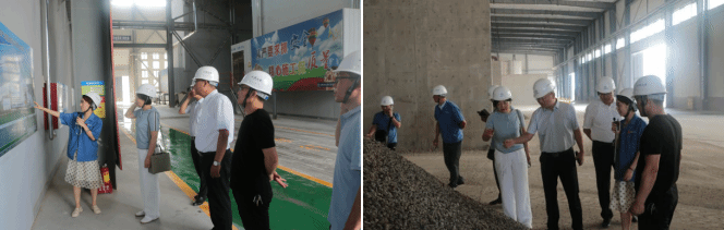 随后,一行人参观了山西山安立德环保科技有限公司数智技术及产品研发展示中心。山安立德推动数智技术发展融合,将固废处置体系与现代化信息技术相结合,构建智能、绿色的固废资源化5G智慧工厂,以智能制造平台为依托,全面提升工厂全面感知能力、优化协同能力、预测预警能力和科学决策能力,加速固废产业的智能化,数字化,助力行业转型高质量发展,形成了覆盖建筑垃圾、工业固废、餐厨垃圾、农业固废、土壤修复、生活垃圾六大业务领域的完善产业布局。 在公司总经理贾立军的带领下,一行人首先深入山西转型综合改革示范区潇河产业园区建筑垃圾资源化处理项目的生产一线,公司技术负责人赵文婧详细介绍了规模年消纳建筑垃圾200万吨处理线,包括年处理能力100~120万吨固定式建筑垃圾资源化利用生产线、移动式建筑垃圾处理系统、年产50万吨生态水稳拌合料生产线、年产100万m3再生混凝土生产线、配套实验室及研发中心。