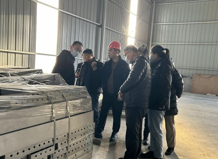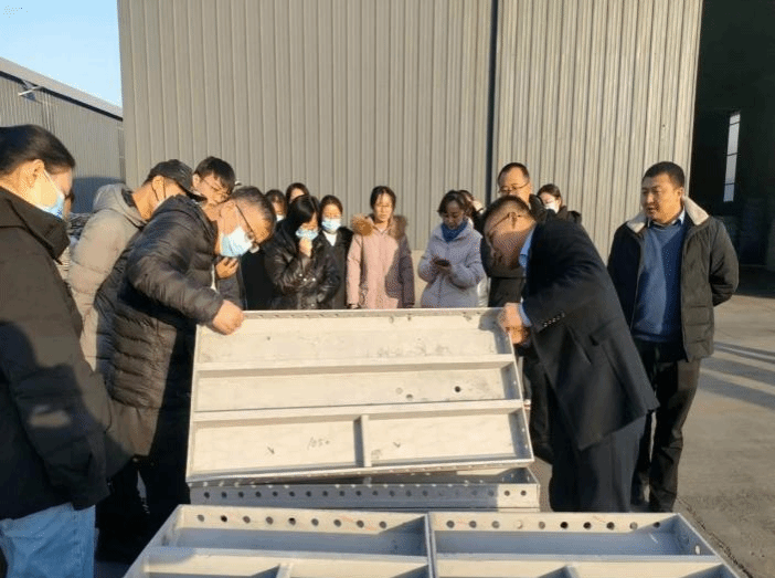 旭航集团总经理王正伟对旭航制造、瑞航环保科技进行了详细介绍,先后到瑞航环保科技厂区、生产车间及产品库房等地进行参观,详细了解了铝模板的生产过程、工艺流程等,针对铝合金模板深化、配模、生产等技术进行现场交流。