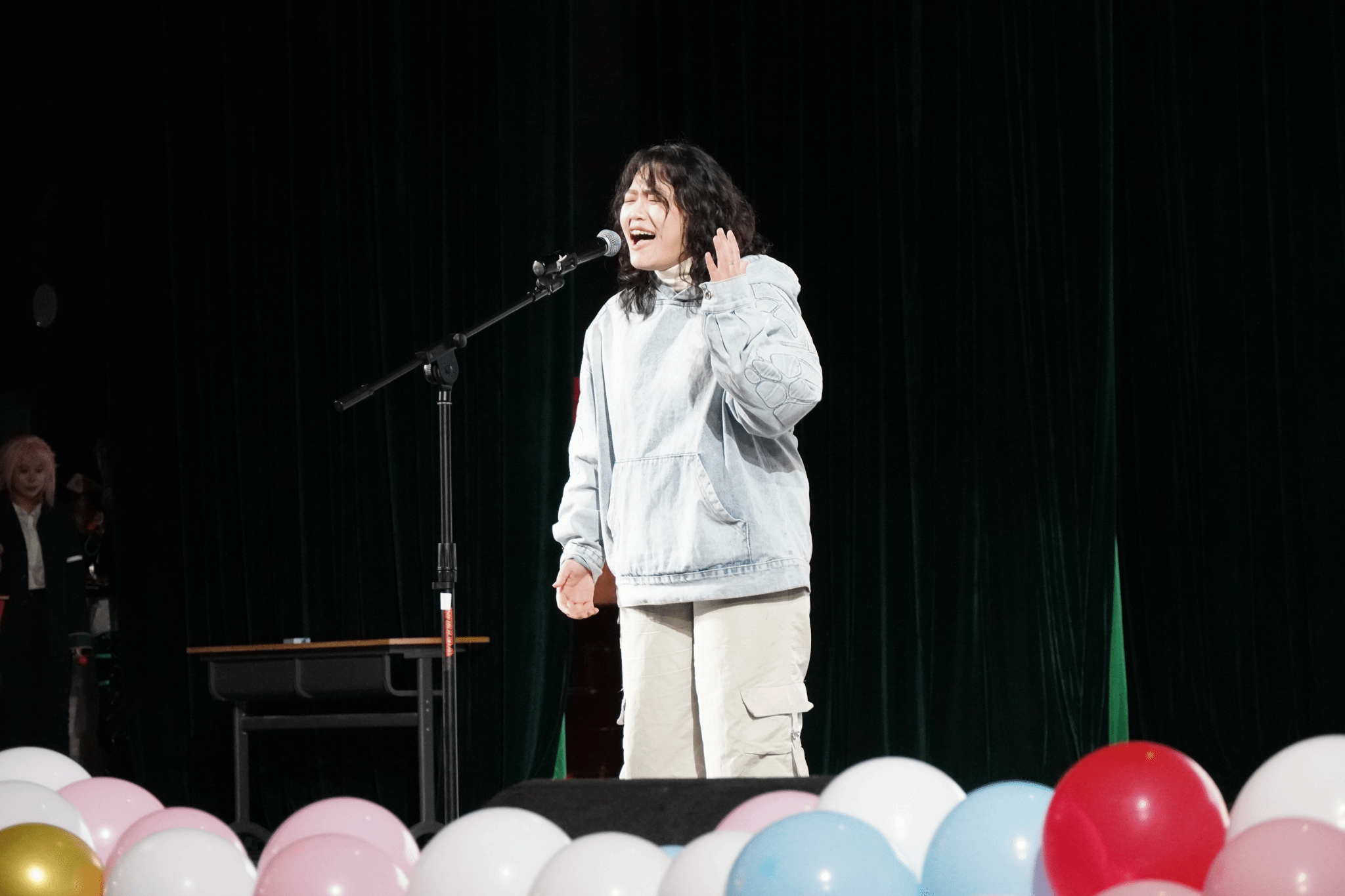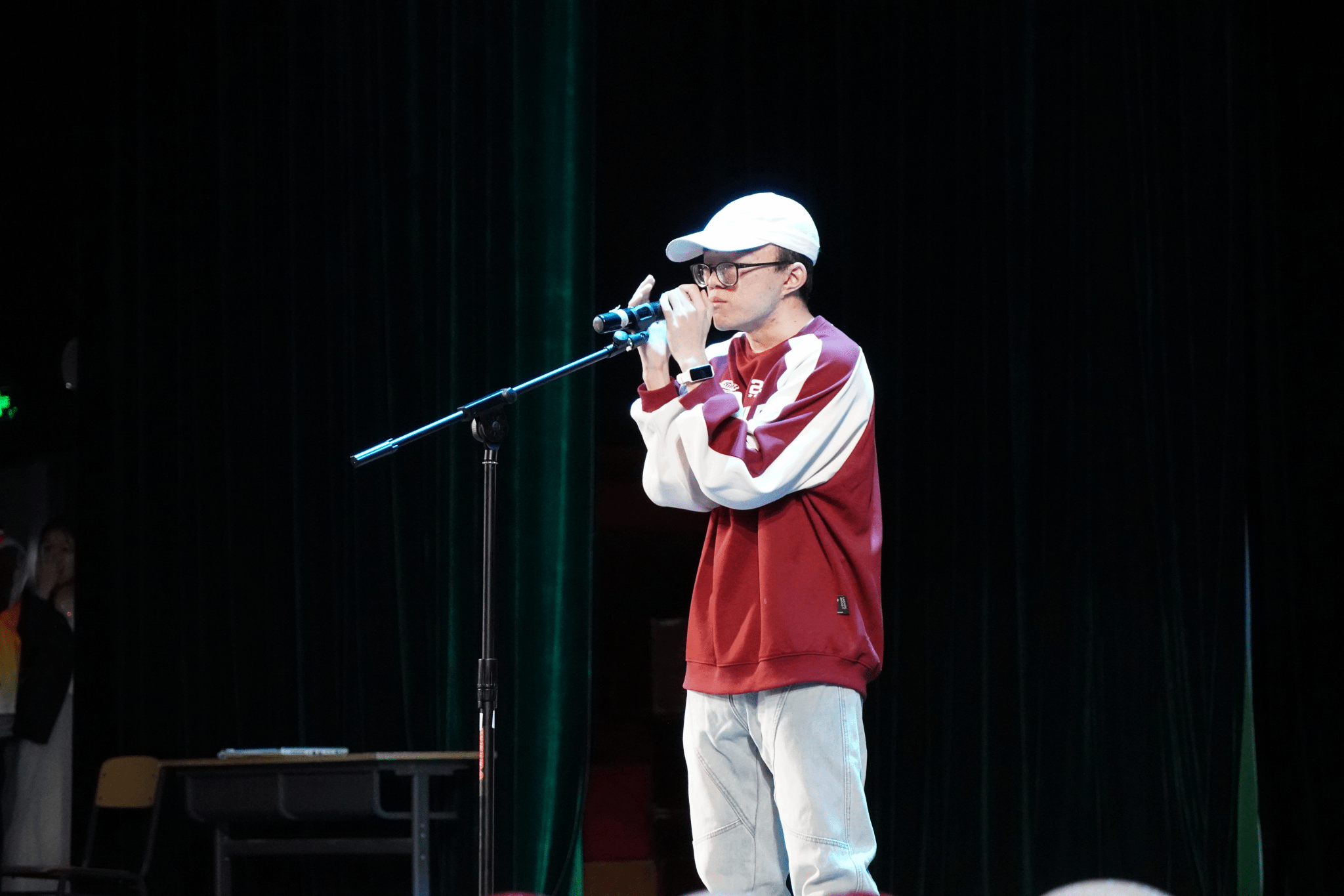 赵凡同学演唱的RAP《旁观者》,唱出了对人生的深刻洞察与哲思,深深触动了在场同学的心灵,全场达到共鸣。