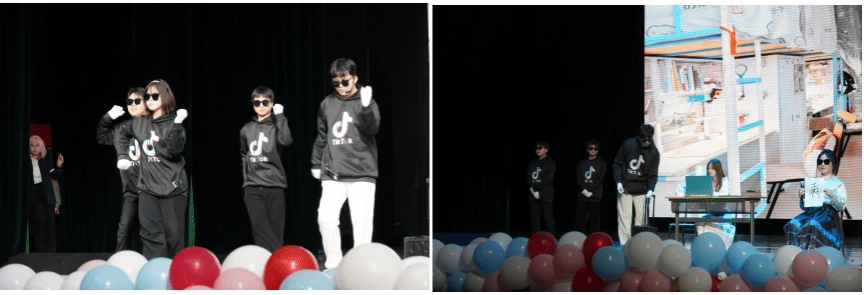 吴义莲、师正遥等六名同学带来的小品《时间都去哪了》,剧情跌宕起伏,提示在座的24及新生珍惜在校宝贵时光,打牢知识基础,提升专业技能。
