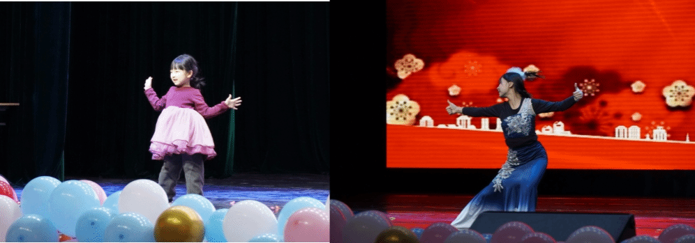 24级辅导员张娟娟老师的两位“千金”,以灵动、曼妙的舞姿,为观众呈献了舞蹈《我爱我的幼儿园》与《灵》,把整场晚会推向高潮。