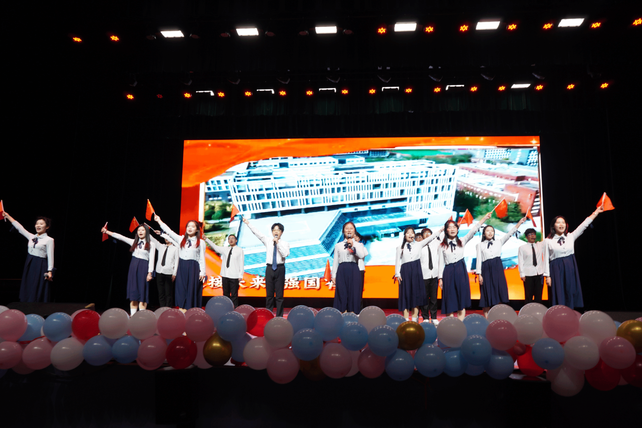 张培泓、张始鲜等12位同学带来的朗诵《迎接未来,强国有我》向伟大祖国发出深情告白,展现出盛世中华日益强大的生机与活力。