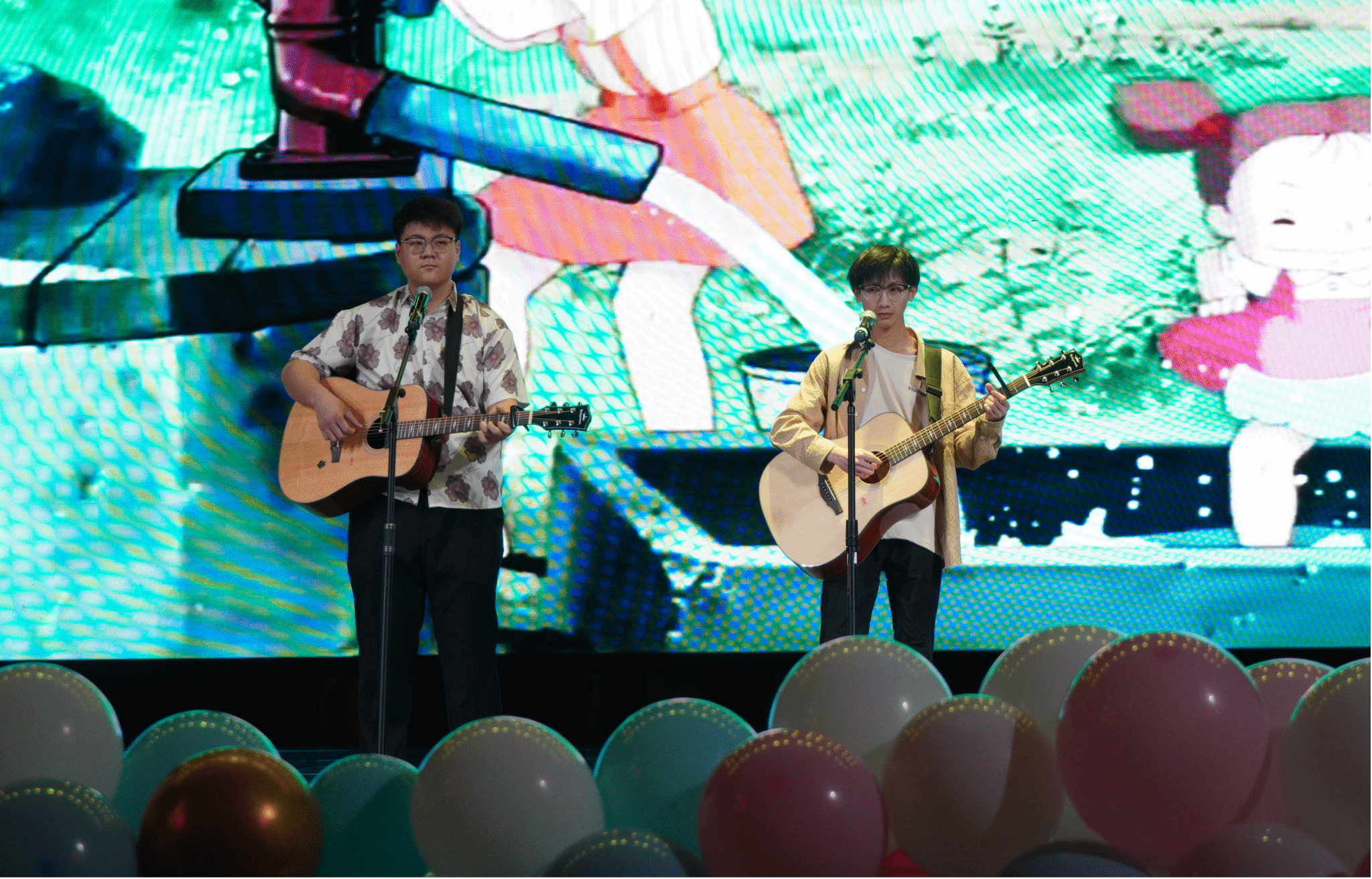 歌曲《稻香》在丁君长乐和戎源兴同学的吉他演奏下,把观众带回到了童年的田野乡间,感受那份乡村的美好与宁静。