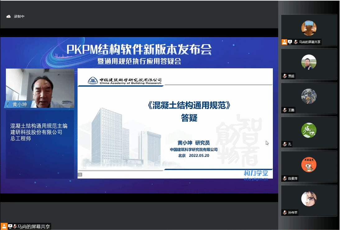 黄小坤,中国建筑科学研究院建研科技股份有限公司总工程师、研究员,《混凝土结构通用规范》主编。黄小坤研究员围绕《混凝土结构通用规范》执行应用中遇到的问题,通过比较新旧规范、国内国外规范,系统解答了构件最小截面尺寸,有关结构材料和设计总说明,板类受弯构件最小配筋率及CRB600H钢筋,关于受剪、受扭、受冲切钢筋设计强度取值,梁、柱配筋问题,舒适度问题,关于钢筋锚固及锚固长度,关于连体结构规定,关于结构整体稳定性,次要受弯构件最小配筋率降低问题,错层结构相关规定,钢筋的混凝土保护层等12个问题。