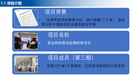 通过汇报交流,我院教师了解了德国职业教育体系,对于今后在职本的教育教学过程中,运用德国职业教育思想进行专业课程开发、专业教学改革、考核体系改革等具有重要的意义。