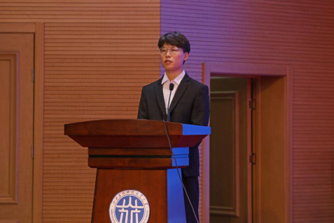 钢结构2101F班宋家轩作为毕业生代表发言。他分享了自己在建工学院的所感所悟,回首了在校的宝贵时光,理解了“土建要强,专业要精”的意义。他表示,要在今后的工作中把学习到的知识应用到实践中去,不管走到哪里,不管在什么岗位,都要继续填好人生的履历表,牢记“厚德精技,励学笃行”的校训,为母校争光添彩,不忘学院领导老师的殷切期望。