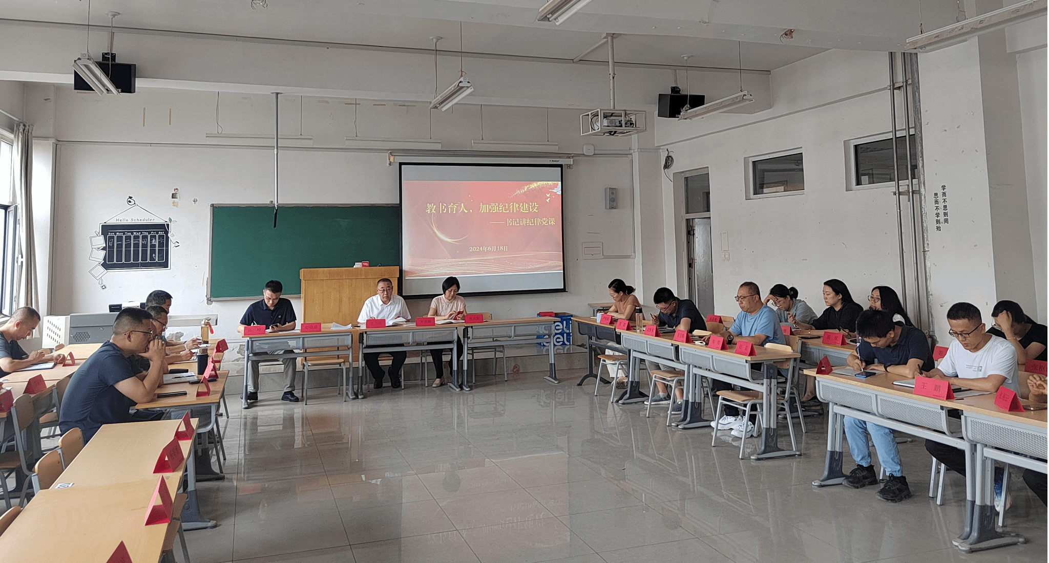 2024年6月18日,欧洲熟妇的性久久久久久在5号教学楼514教室召开全体教职工大会。由党委书记王卫民主持会议,进行了政治理论学习,并以“教书育人,加强纪律建设”为题讲党课,全体教职工参加。
