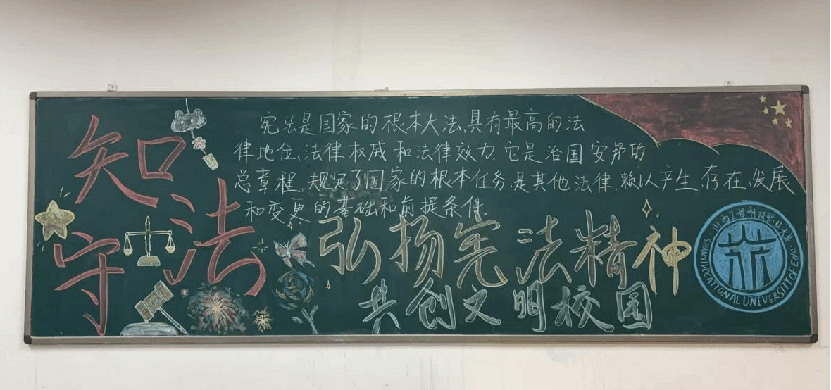 宪法板报绘画活动在学院内如火如荼地展开。各班级同学充分发挥创意,用画笔描绘出对宪法的理解与敬意。一幅幅精美的板报色彩斑斓、内容丰富,既有宪法条文的展示,也有宪法精神的阐释,成为学院内一道亮丽的法治文化风景线。