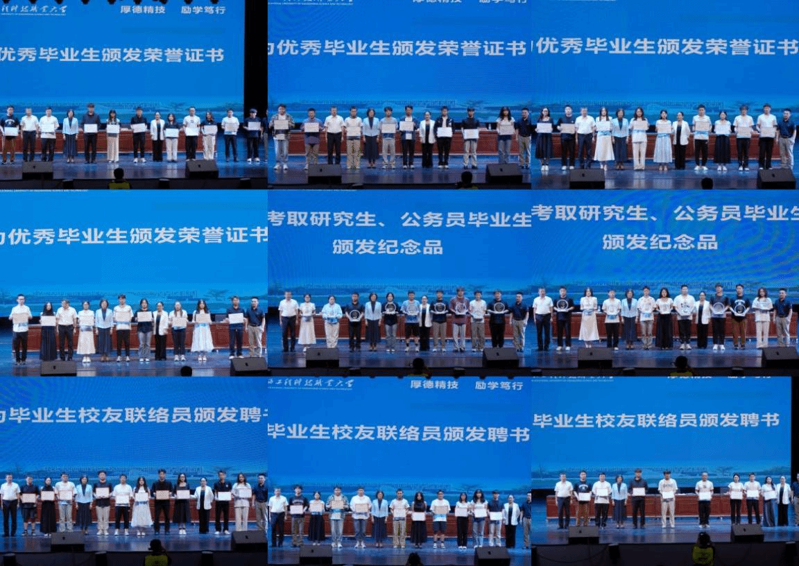 毕业典礼上,院领导们为优秀毕业生颁发荣誉证书、为校友联络员颁发聘书。