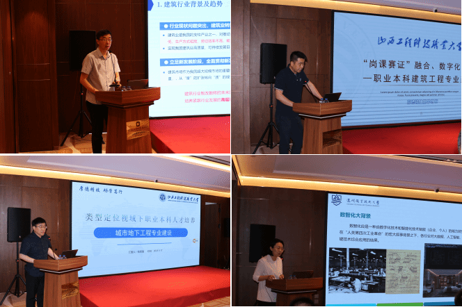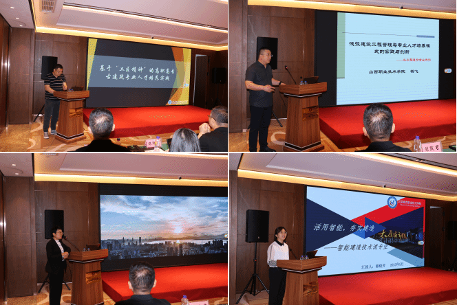 山西工程科技职业大学古建筑专业带头人王晓华、山西职业技术学院建工系主任杨飞、山西工程职业学院建工系副主任副赵连平、太原城市职业技术学院教研室主任郭晓芳,分别以“基于‘工匠精神’的高职古建筑专业人才培养实践”、“浅谈建设工程管理类专业人才培养模式的实践与创新——以工程造价专业为例”、“土建人才的摇篮,建筑产业的旗舰——说建筑工程技术专业”、“活用智能,夯实建造——说高职智能建造技术专业”为题,围绕土木建筑类高职专业建设进行了分享。