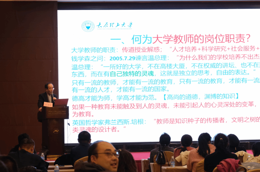 太原理工大学学术委员会副主任、钢结构与空间结构研究中心主任,雷宏刚教授做《大学教师的科研困惑与路径》主题报告。雷教授从个人经历出发,通过分析当前大学教师的岗位职责、科研能力及科研困惑,提出了破解科研困惑的有效路径,并介绍了团队的科研实践及体会。