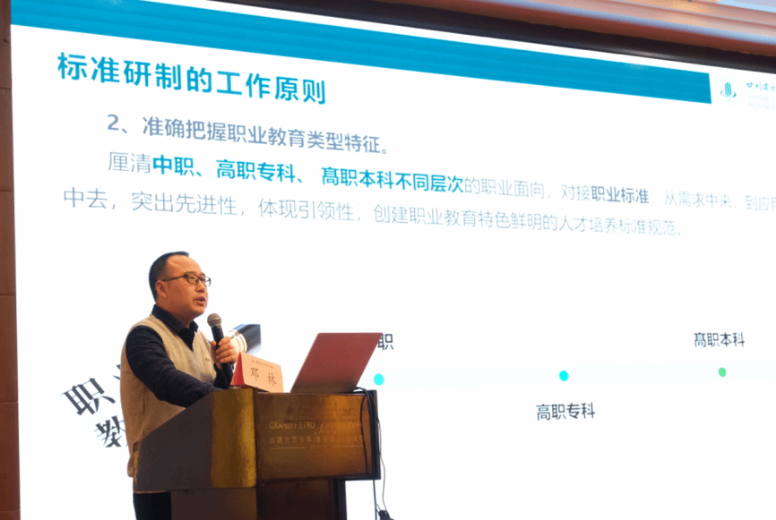 四川建筑职业技术学院党委常委、副院长,四川省建筑业协会副会长、四川省土木建筑学会副理事长,邓林教授以《土建施工类专业教学标准建设的探索与实践——以智能建造技术专业为例》为题,对土建施工类专业教学标准研制的工作原则、标准研制的基本情况、标准研制的思路特色进行了分享,并以智能建造技术专业为例介绍典型专业的应用实践情况。
