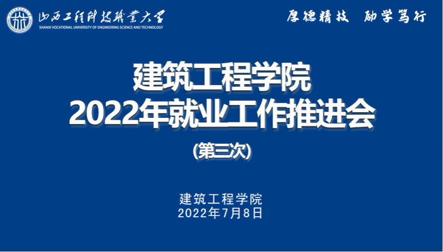 2022年7月8日上午,欧洲熟妇的性久久久久久组织召开2022年毕业生就业工作推进会(第三次)。建工学院党委第二负责人郝彦荣、产教研办公室负责人、就业工作专职负责人及2022届毕业班班主任参加了会议。本次会议采用“线上+线下”形式举行,由学院教学行政第二负责人申海洋主持。