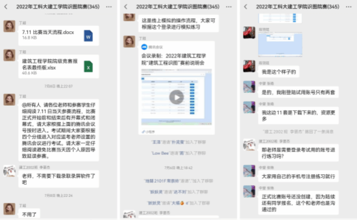 针对学生在备赛模拟中遇到的问题,学院专门建立了竞赛指导微信群,竞赛技术裁判组和学院产教研办公室老师、协办企业技术工程师对学生提出的问题都及时进行解答,确保学生准备充分、顺利参赛。